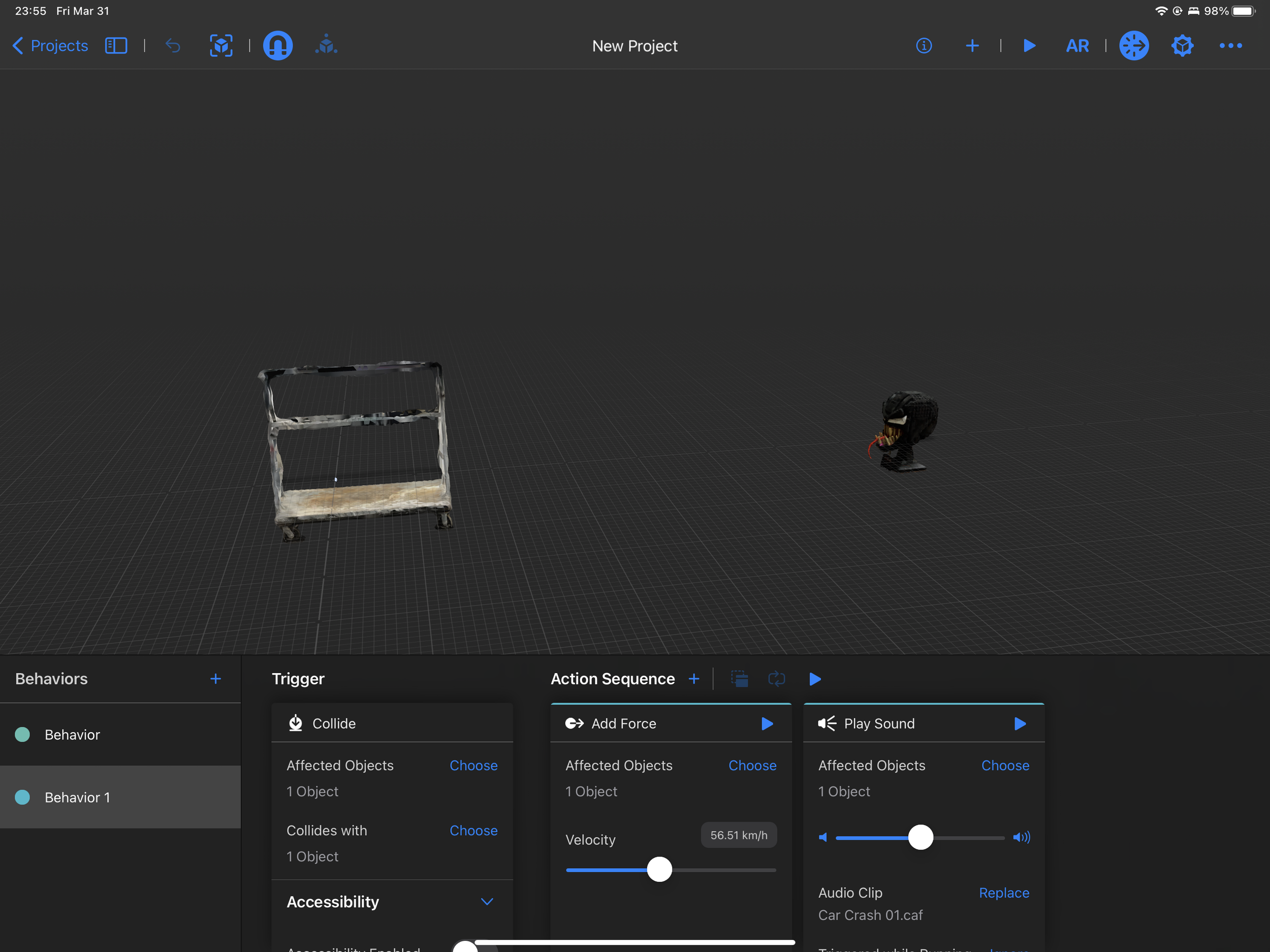 By adding behavioral commands to the reality composer, the 3D models become interactive and add fun.