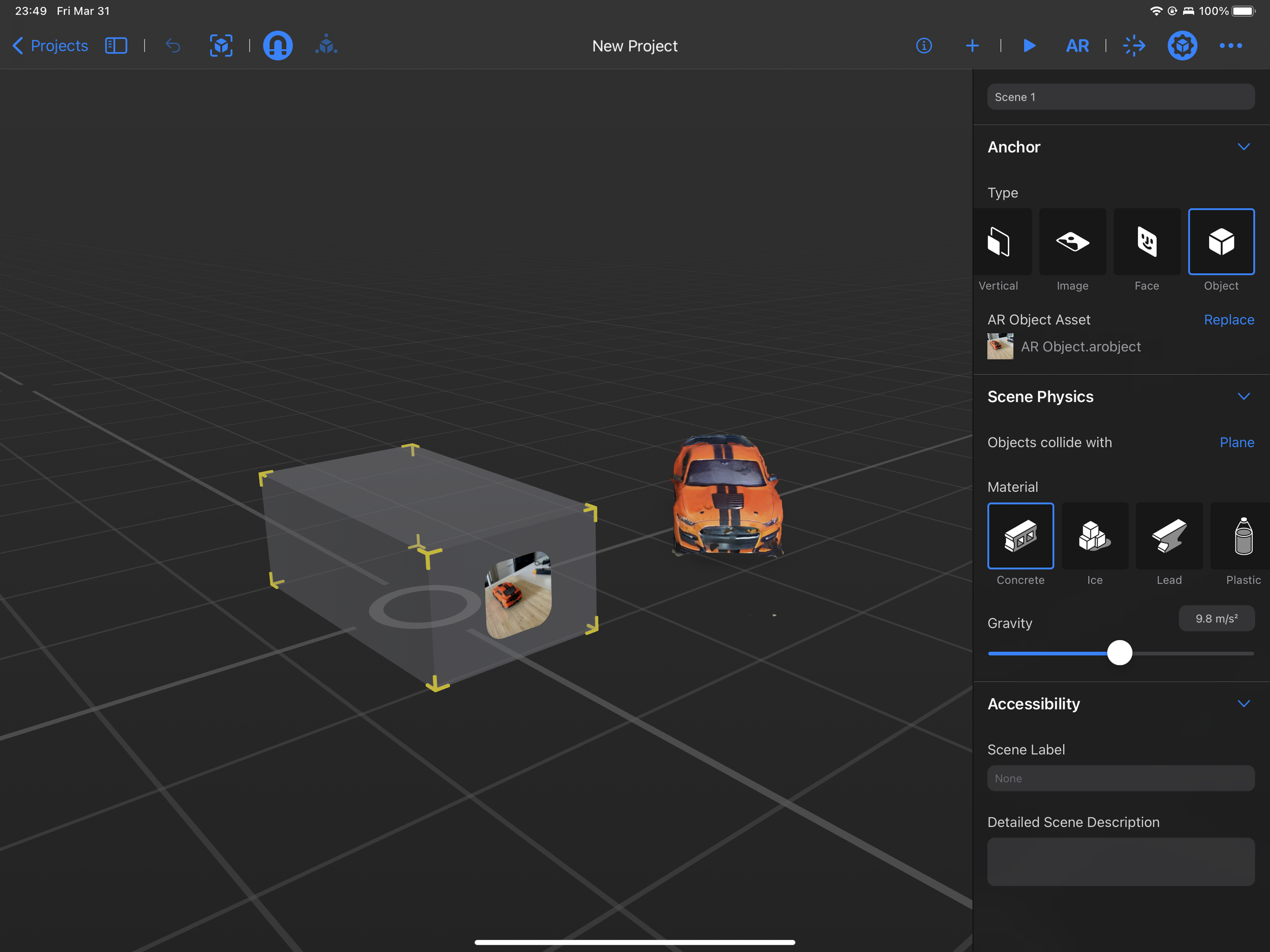 By trying different types of anchors, we understand the basic underlying framework of Reality composer and the media through which AR is manifested.